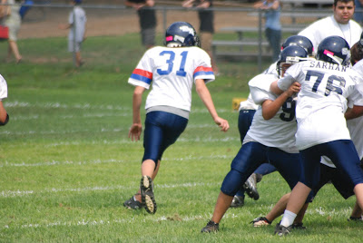 And today, The Little Boy had a football scrimmage. Yup…the controversy is over. He is not, apparently, in contention for QB. He’s too fast. He will be receiving on offense and playing safety on defense.