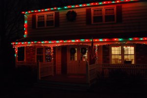 I always tease him about it because, in my own secret fantasy world, our house is decorated with elegant, mature clear bulb lights. Not the honking C9’s my spousal unit loves. But, because I love him, I okay the C9’s every year. To his credit, he always asks me if I’m ready for him to toss them in the trash and to buy all clear bulbs. Last year, we did not decorate the house, nor have a tree, because we spent I’ll give you a teaser photo of the inside, but I’m holding the rest back because the house is a wreck I’m participating in Boo Mama’s Christmas Tour of Homes 2008 (mental note: put html button in side bar announcing it).