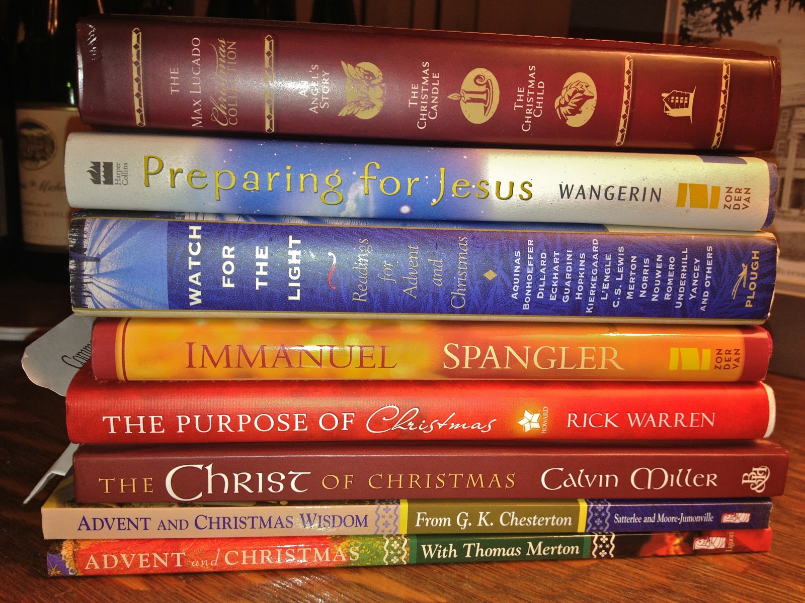 Christmas is really what I’m about. My official #1 love language is gifts. I love to give them as much as I love to get them. Well, almost as much. Now that I’m a grown-up, I think of the Christmas season more and more as “Advent.” I grew up in the Episcopal church and the term Advent is very familiar. Then I married a Baptist man and “Advent” wasn’t a word used around Christmas in our church until our most recent Pastor. He recently retired, but he brought to our decidedly Baptist church a light touch of Anglican liturgy, including the use of the word Advent to describe the season and not just the special candles we pull out each December. I have collected a few Advent books over the years and this year picked up a new one to try out. Normally, I would just use one of them throughout the entire Advent season, but this year I think I’m going to randomly pull from each of them every morning for my devotional/quiet time. Here they are stacked on my dining room buffet: