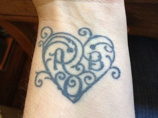 Tats have been mentioned on my blog before. Here and here. I have never hidden the fact that I have a tattoo. It is on my left forearm, inside, near my wrist. It has significant meaning to me. I don’t refer to it as “ink” or “body art.” If I ever get another one, it will tie in with the one I already have. My tat is a heart with the initials A B O. I wanted something kinda girly and it is. Even though The A B O stands for Andrew Bryson Odenthal, who was anything but girly. He was big and brawny and manly and funny and a hugger and a kisser. He had the most beautiful eyes and his belly laugh was beyond contagious. *stopping now for a cry session*