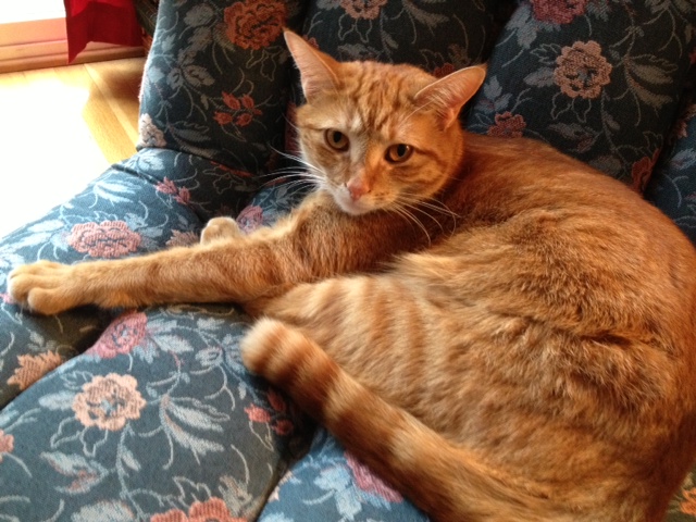 10. While watching the clock last night, waiting to see if Mr. Soon-to-turn-17 would blow curfew, I heard the fox out back. If you have never heard a fox “talking” at night, it sounds like a baby crying or screaming. Always gives me shivers when I hear it. We have noticed that since Jack Bodacious adopted us, we only hear the fox out back when Chloe is outside at night. During these night time escapades of hers, we refer to her as “Fox Bait.” I got up shortly before midnight and opened the door and called for her and she didn’t show up to come in. But, after The Wild Boy got home, I heard her attacking her food bowl and a short while later, she jumped up on our bed to snuggle in for the night. I seem to be the only one ever concerned about her not returning home. Well, me and Nana. This is a picture of her this morning, looking none the worse for her late night adventure.
