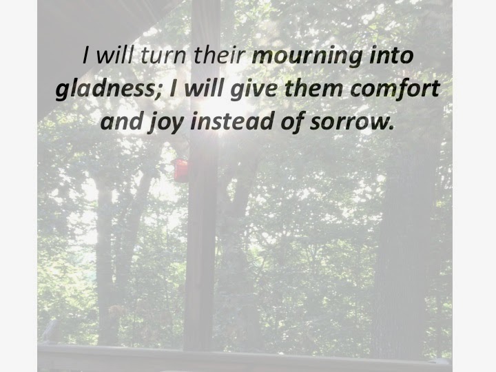 I will turn their mourning into gladness; I will give them comfort and joy instead of sorrow.
