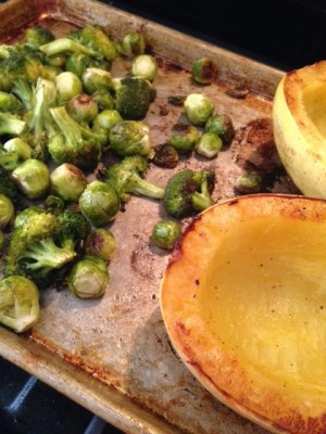 A distinct benefit for My Girl and I this week is that we have been eating all of the yummy things we love, but the boys do not. I cleaned out the fridge and roasted a ton of veggies that we ate all week. Mr. Hater-of-all-things-Squash-and-Sprouts really missed out. We roasted up butternut squash, spaghetti squash, broccoli and Brussels sprouts. My Girl is actually bringing home dinner tonight and I can’t wait to see what we will be having.