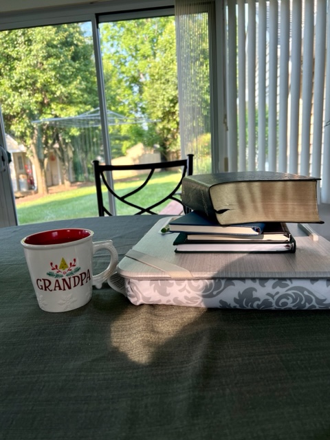 The flip side to the quiet mornings at Dad’s are the mornings at our house. If you know my husband, you know that quiet is not in his vocabulary. Our honorary children sent their firstborn to our house for naps so that she could learn to sleep under any conditions, i.e., noise. Don’t get me wrong, I’m not complaining and I’m not criticizing my husband at all. His extroverted personality is one of the things that I love about him, obviously. But even 40 years in (this September) his extroverted DNA wins out in the mornings, and he greets me with words (I don’t do words before coffee), hugs (ew), and activity (how dare you.) While I feel that I have somewhat adjusted to the not quiet mornings and no longer (usually) grumble about his boisterous morning greetings, he hasn’t skipped a beat in 40 years and if I were honest, I wouldn’t want him to.
